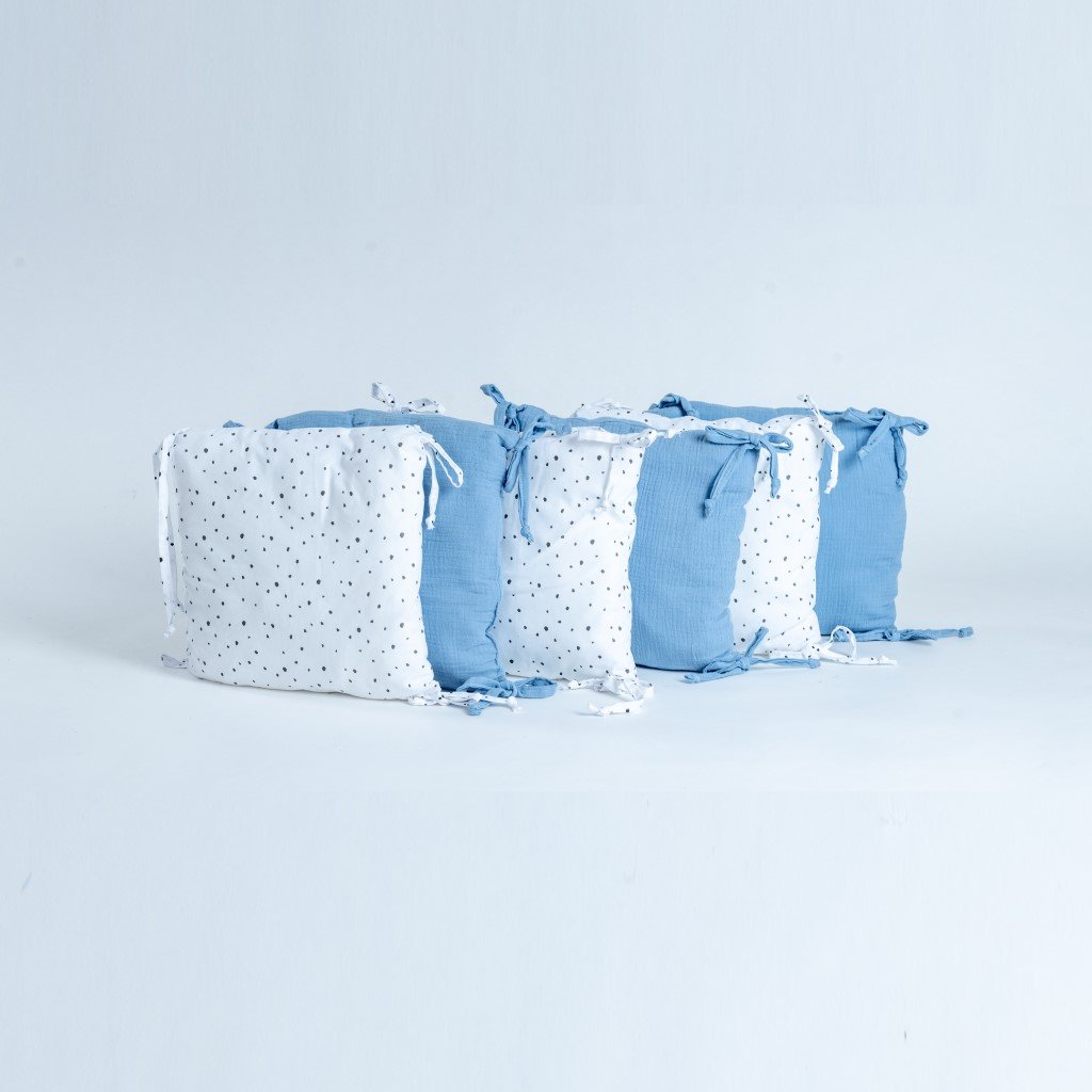 - Polštářkový mantinel je součástí barevně sladěné sady výrobků pro miminko SADA ČERNOBÍLÉ TEČKY a SADA JEDNOBAREVNÁ MUŠELÍNOVÁ.