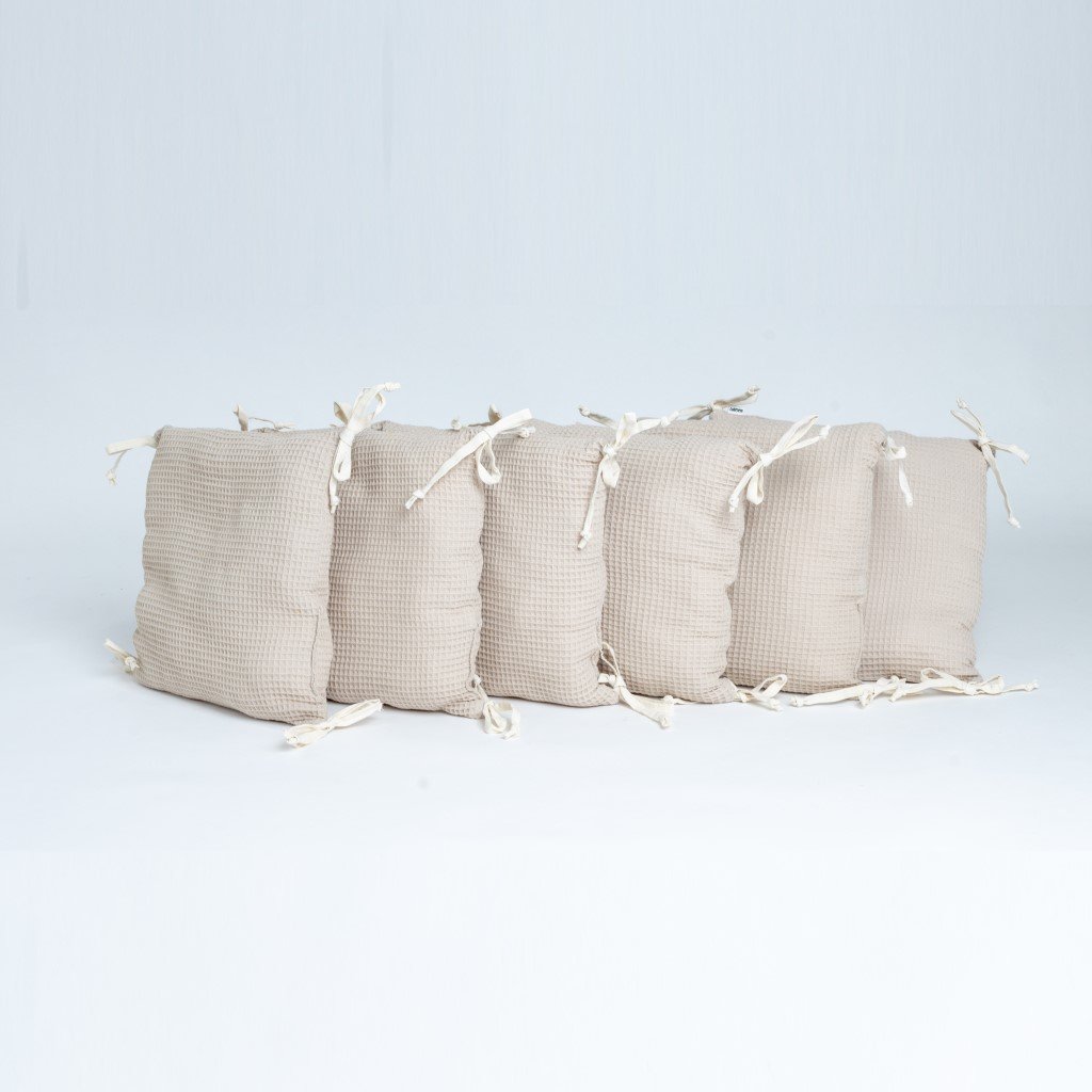 - Polštářkový mantinel je součástí barevně sladěné sady výrobků pro miminko SADA JEDNOBAREVNÁ VAFLOVÁ.