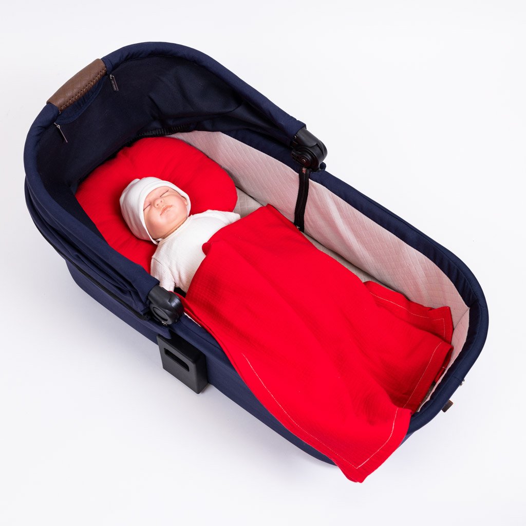 Jemná mušelínová souprava do kočárku. Souprava obsahuje stabilizační polštářek ala podhlavníček, který pomáhá zafixovat hlavičku miminka ve správné poloze a zabraňuje jednostrannému zploštění hlavičky. Je vhodný nejen do kočárku, ale i do hnízdeček, postýlek i autosedaček, kde tlumí případné nárazy. Podhlavníček se skládá z vyvýšeného půlkruhu kolem hlavičky a plochého vnitřního kolečka pod hlavičkou a krkem miminka. Mušelínová deka je extra jemná a vzdušná. Vhodná hlavně jako lehká přikrývka v horkém létě. Miminko chrání před průvanem, hlukem a přímým světlem. K soupravě do kočárku doporučujeme dokoupit i mušelínové prostěradlo.