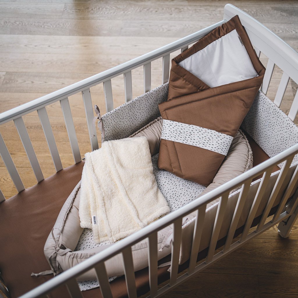 - pokud se miminku bude v hnízdečku stále líbit, je možné rozvázat tkanice a dále používat hnízdečko i ve velké posteli jako postranní mantinely.