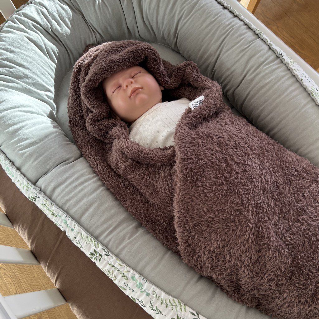- Zavinovací deku jsme ušili z heboučkého wellsoftu ve hnědém odstínu.