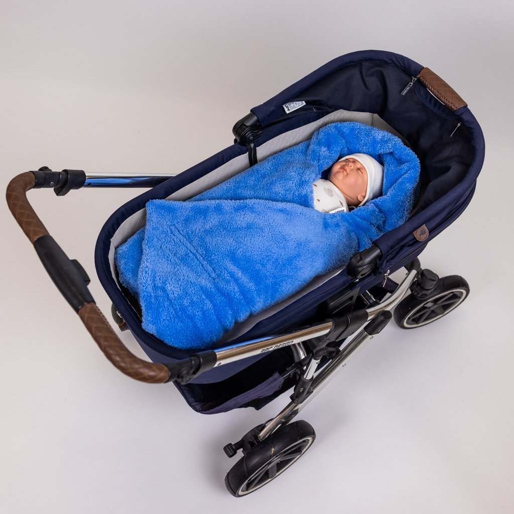 - Zavinovací deku jsme ušili z heboučkého wellsoftu v modrém odstínu.